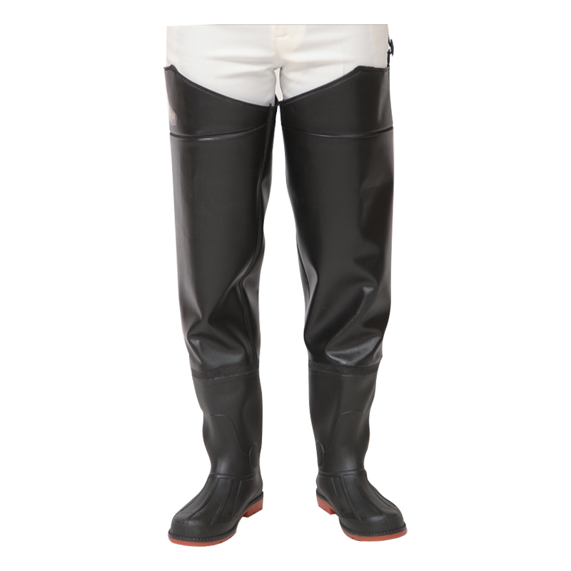 รองเท้าบู๊ท PVC ทรงสะโพก เป็นกางเกงบูตรอบอกความยาวระดับสะโพก ทำจากวัสดุ PVC ทั้งหมดที่มีคุณสมบัติกันน้ำได้ดี การออกแบบ Boot Foot ที่เป็นเอกลักษณ์ผสมผสานระหว่างรองเท้าบูทกับกางเกงบูต ดังนั้นผู้ใช้จึงไม่จำเป็นต้องสวมรองเท้าเพิ่มเติมเมื่อสวมใส่ ช่วยให้ผู้สวมใส่สวมใส่และถอดได้ง่ายขึ้น และป้องกันไม่ให้น้ำซึมผ่านช่องเปิดรองเท้าได้อย่างมีประสิทธิภาพ กางเกงบู๊ทเต้านมรุ่นนี้ออกแบบให้มีความยาวตั้งแต่บั้นท้ายขึ้นไป จึงเหมาะสำหรับใช้ในสถานการณ์ที่ระดับน้ำอยู่ที่ระดับความลึกระดับหนึ่ง ในด้านการออกแบบ แม้ว่าความยาวของผลิตภัณฑ์นี้จะค่อนข้างยาว แต่ก็ไม่ส่งผลต่ออิสระในการเคลื่อนไหวของผู้ใช้ วัสดุ PVC มีความนุ่มสบายและพอดีกับสรีระของผู้ใช้ได้ดี ทำให้ PVC Boot Foot Hip Waders เป็นอุปกรณ์ที่ใช้งานได้จริงที่ใช้กันอย่างแพร่หลายในกิจกรรมทางน้ำและงานกลางแจ้งต่างๆ เช่น งานตกปลา งานเกษตร งานทำความสะอาดแม่น้ำ เป็นต้น